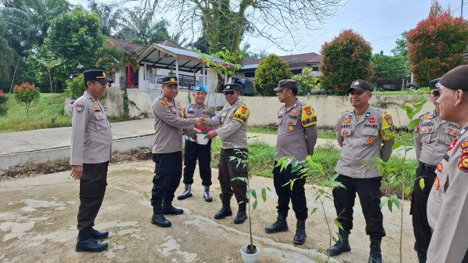 TAMBUSAI, Siletperistiwa.com – Dalam rangka mendukung dan menyukseskan Program Kapolda Riau Penghijauan Alam, Polsek Tambusai melaksanakan kegiatan yang unik dan penuh makna pada Selasa, (08/04/2025). Bertempat di halaman Mapolsek Tambusai, kegiatan pemberian hadiah ulang tahun kepada personel dikemas secara berbeda, yaitu dengan memberikan bibit pohon dan melaksanakan penanaman pohon Gaharu.