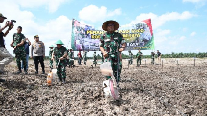 Sementara itu, Pangdam II/Sriwijaya Ujang Darwis menjelaskan Penanaman Padi Gogo ini merupakan pencanangan sebagai upaya peningkatan ketahanan pangan di Kabupaten Banyuasin, Sumatera Selatan. “Kita manfaatkan lahan yang ada dengan musim tanam yang pas dengan harapan hasil pertanian kita bisa meningkat baik padi maupun jagung,” jelasnya.