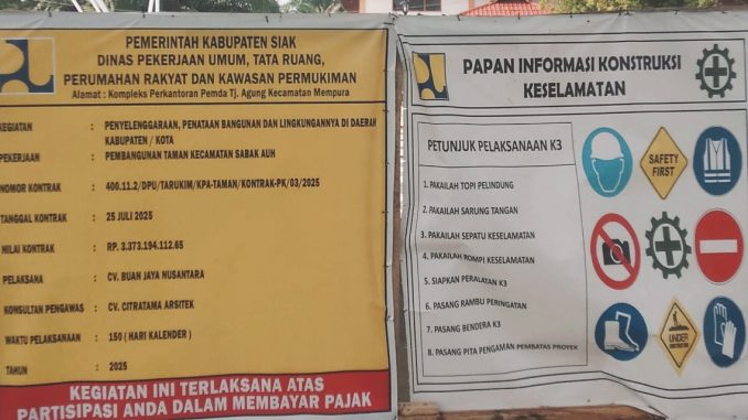 SIAK | SILETperiatiwa.com – Dewan Pimpinan Pusat Lembaga Swadaya Masyarakat Barisan Suara Rakyat Bersatu (DPP LSM BERANTAS) melontarkan kritik pedas terhadap proyek pembangunan Taman Kecamatan Sabak Auh yang menelan anggaran lebih dari Rp3,3 miliar. Proyek itu dinilai tak masuk akal dikerjakan saat keuangan Kabupaten Siak masih morat-marit akibat tunda bayar sejak 2024 hingga kini.