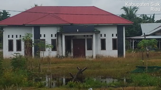 Teks Foto: Bangunan Polindes di Dusun Kampung Baru, Kampung Dosan, Kecamatan Pusako, Kabupaten Siak, yang telah berdiri selama tiga tahun namun hingga kini tidak difungsikan. Fasilitas kesehatan tersebut tampak terbengkalai tanpa kehadiran petugas medis.