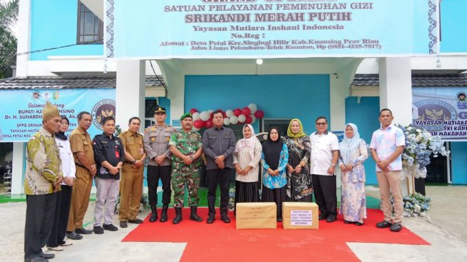 Kuansing, Siletperistiwa.com – Pemerintah Kabupaten Kuantan Singingi menegaskan komitmennya dalam mendukung program nasional peningkatan gizi masyarakat, khususnya bagi anak-anak usia sekolah. Hal tersebut disampaikan Bupati Kuantan Singingi Dr. H. Suhardiman Amby saat menghadiri peresmian Satuan Pelayanan Pemenuhan Gizi (SPPG) Srikandi Merah Putih milik Yayasan Mutiara Inshani Indonesia yang berlokasi di Desa Petai, Kecamatan Singingi Hilir, Selasa (20/1/2026) pagi.